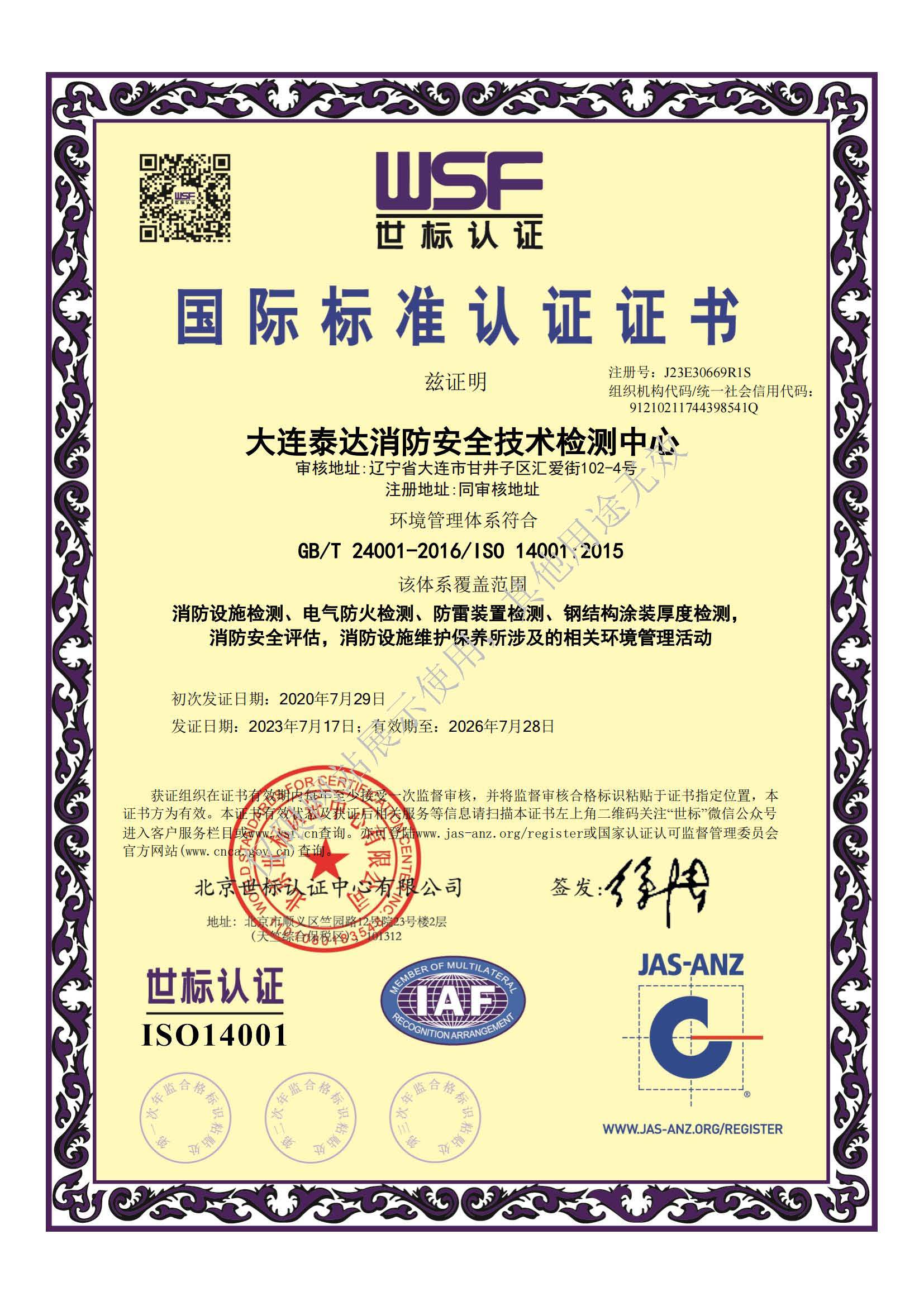 是經“社會消防技術服務信息系統”備案并公示的消防技術服務機構,已取得中國氣象局頒發的雷電防護裝置檢測資質證書、遼寧省質量技術監督局審核批準的檢驗檢測機構資質認定證書(CMA)及包括消防檢測、電氣檢測、雷電防護裝置檢測、防火涂層厚度檢測等在內的200余項檢驗檢測能力,取得大連市應急管理局頒發的安全生產標準化證書,獲得質量管理體系、環境管理體系、職業健康安全管理體系認證證書,是經備案的高新技術企業,可獨立出具具有證明作用的檢測報告。